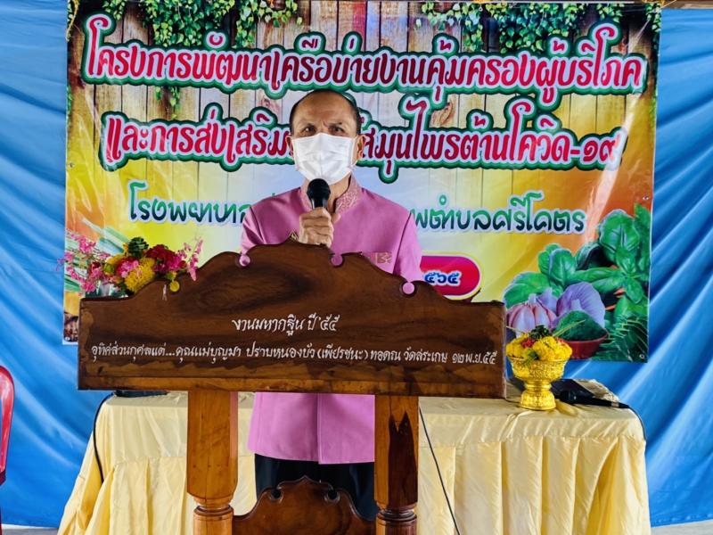 นายทินกร พุทธลา นายกองค์การบริหารส่วนตำบลศรีโคตร เป็นประธานเปิดงาน โครงการพัฒนาเครือข่ายงานคุ้มครองผู้บริโภคและการส่งเสริมการใช้สมุนไพรต้านโควิด-๑๙ พร้อมด้วย นายสมเด็จ เพชรวิสัย รองนายก อบต.ศรีโคตร ร่วมกับ เจ้าหน้าที่โรงพยาบาลส่งเสริมสุขภาพตำบลศรีโคตร และ อสม.ทุกหมู่บ้าน ในพื้นที่ตำบลศรีโคตร ณ บ้านดงเมืองจอก หมู่ที่ ๘ ตำบลศรีโคตร อำเภอจตุรพักตรพิมาน จังหวัดร้อยเอ็ด