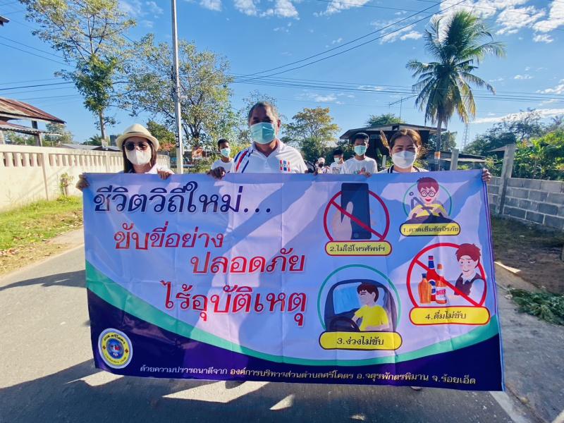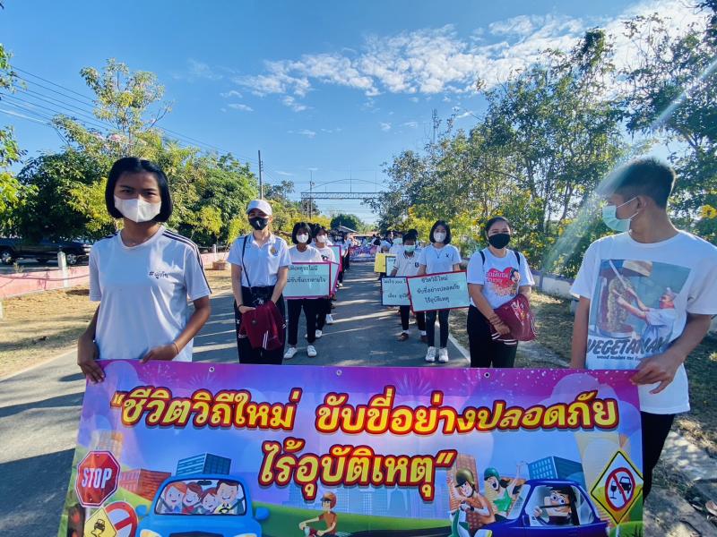 ดำเนินการ”กิจกรรมเดินรณรงค์การป้องกันและลดอุบัติเหตุทางถนน” โครงการดำเนินการตามมาตรการการลดอุบัติเหตุทางถนนช่วงเทศกาลปีใหม่ ๒๕๖๖ วันที่ ๒๙ ธันวาคม ๒๕๖๕