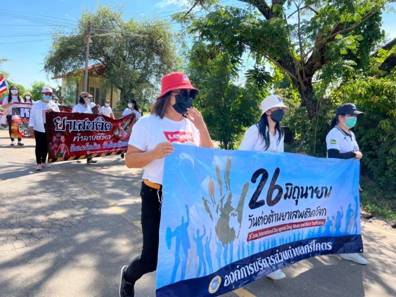 วันที่ ๒๔ มิถุนายน ๒๕๖๕ จัดกิจกรรมเดินรณรงค์เนื่องในวันต่อต้านยาเสพติดโลก ประจำปี ๒๕๖๕ ภายใต้แนวคิดและคำขวัญ “รู้คิด รู้ทัน คือวัคซีนป้องกันยาเสพติด มุ่งมั่น แก้ไข ขจัดภัยยาเสพติด รวมพลังประชาไทย พ้นภัยยาเสพติด” (11 ภาพ)
