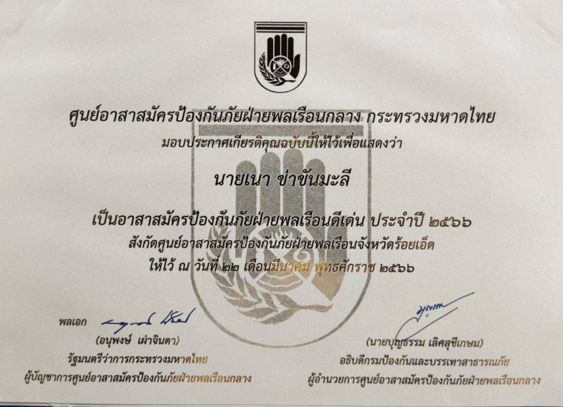 นายทินกร พุทธลา นายกองค์การบริหารส่วนตำบลศรีโคตร ได้มอบหมายให้ นายสมเด็จ เพชรวิสัย รองนายก อบต.ศรีโคตร นายอรรคเดช เจริญธนิตกุล นักป้องกันและบรรเทาสาธารณภัย ชำนาญการ นายเอนก เขื่อนเพชร ผู้ช่วยนักป้องกันและบรรเทาสาธารณภัย พร้อมด้วย นายเนา ข่าขันมะลี ซึ่งได้รับคัดเลือกเป็น อปพร. ดีเด่น ประจำปี ๒๕๖๖ ในการเข้าร่วมพิธีมอบรางวัลเชิดชูเกียรติศูนย์ อปพร. ดีเด่น และอปพร.ดีเด่น ประจำปี ๒๕๖๖ โดยรับมอบใบประกาศเกียรติคุณและเข็มเชิดชูเกียรติ อปพร. ดีเด่น จาก นายทรงพล ใจกริ่ม ผู้ว่าราชการจังหวัดร้อยเอ็ด ณ ห้องประชุมมหาเจดีย์ชัยมงคล ชั้น ๕ ศาลากลางจังหวัดร้อยเอ็ด
