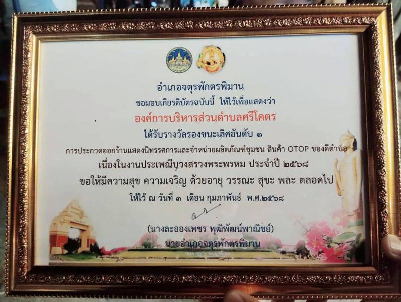 รองชนะเลิศ อันดับ1 การประกวดออกร้านแสดงนิทรรศการและจำหน่ายผลิตภัณฑ์ชุมชนสินค้า OTOP ของดีตำบลศรีโคตร
