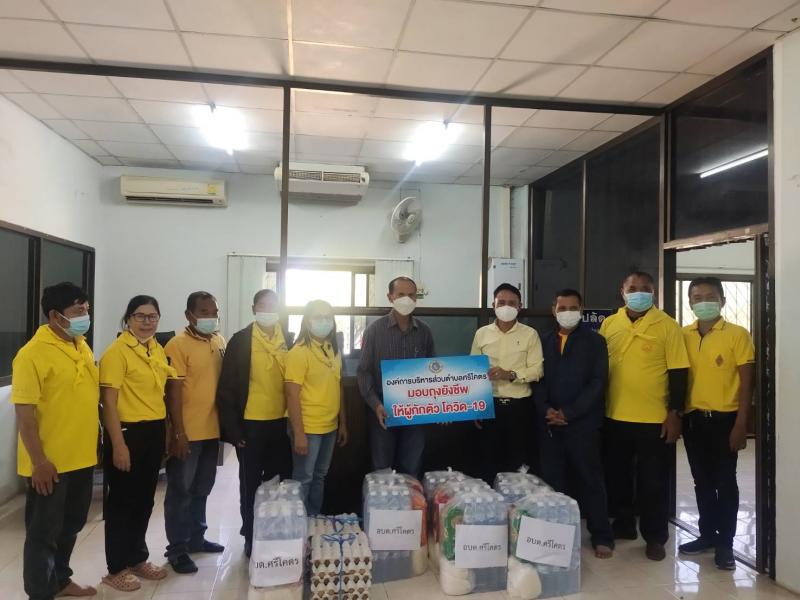 มอบถุงยังชีพ ให้แก่ผู้กักตัว ที่หายป่วยจากการติดเชื้อไวรัส โควิด-19 บ้านสำโรง หมู่ที่7 จำนวน 5 ราย (4 ภาพ)