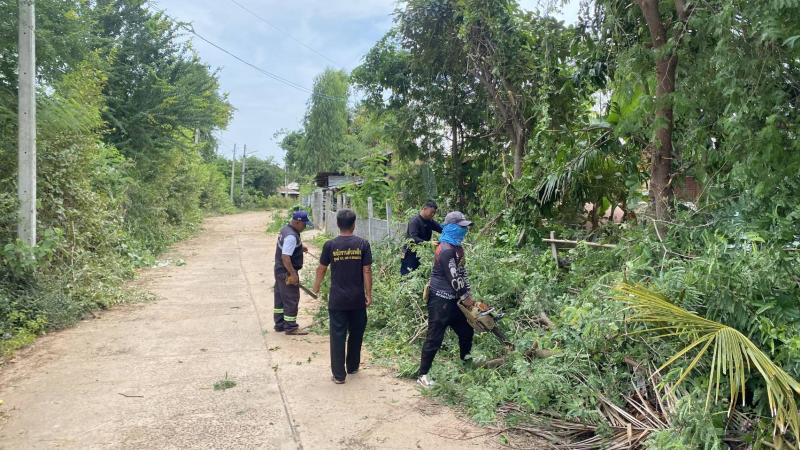ดำเนินการปรับภูมิทัศน์ ตัดแต่ง กิ่งไม้และหญ้าตามไหล่ทาง ถนนสายบ้านอีโคตร