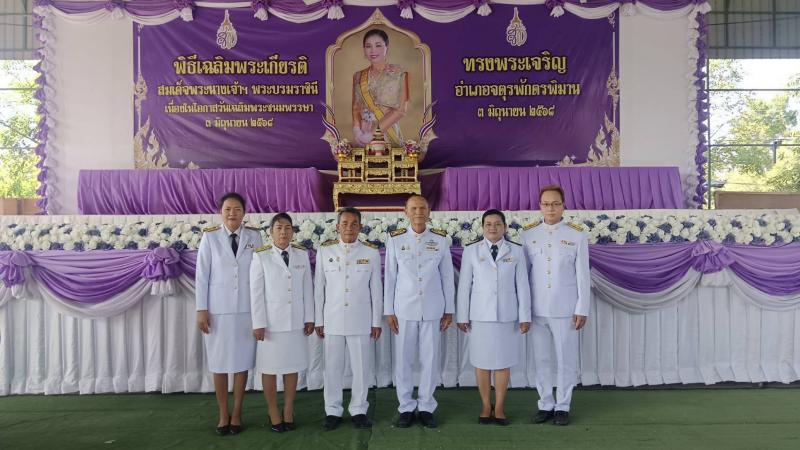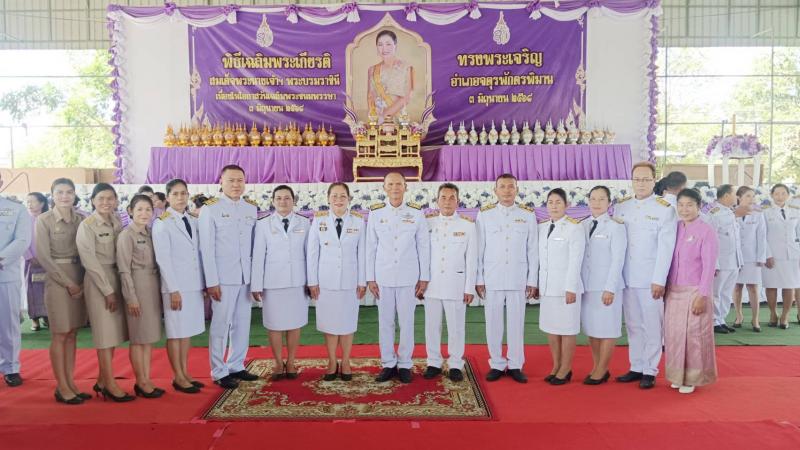 เข้าร่วมพิธีเฉลิมพระเกียรติ สมเด็จพระนางเจ้าฯ พระบรม ราชินี เนื่องในโอกาสวันเฉลิมพระชนมพรรษา ๓ มิถุนายน ๒๕๖๘ ณ ศาลาลูกพระพรหม (โดมอเนกประสงค์) ที่ว่าการอำเภอจตุรพักตรพิมาน จังหวัดร้อยเอ็ด