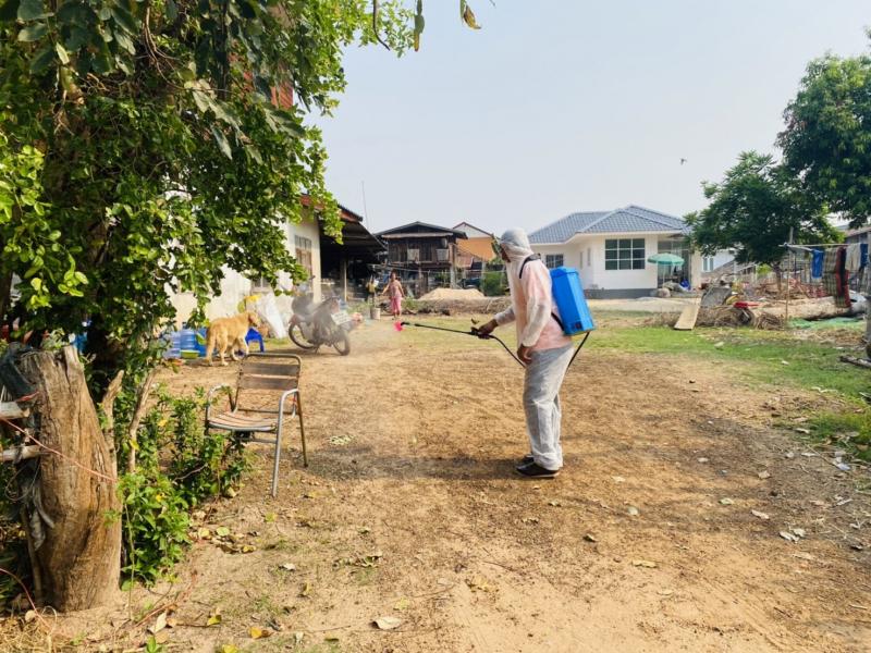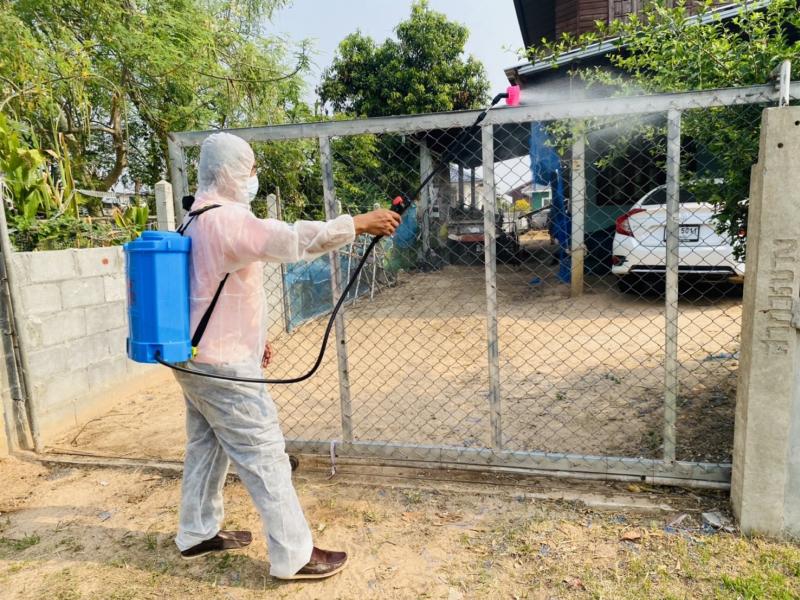 ดำเนินการพ่นฆ่าเชื้อ ครัวเรือนผู้ติดเชื้อ เพื่อป้องกันการแพร่ระบาดโรคติดเชื้อไวรัสโคโรน่า ๒๐๑๙ (โควิด -๑๙) (4 ภาพ)