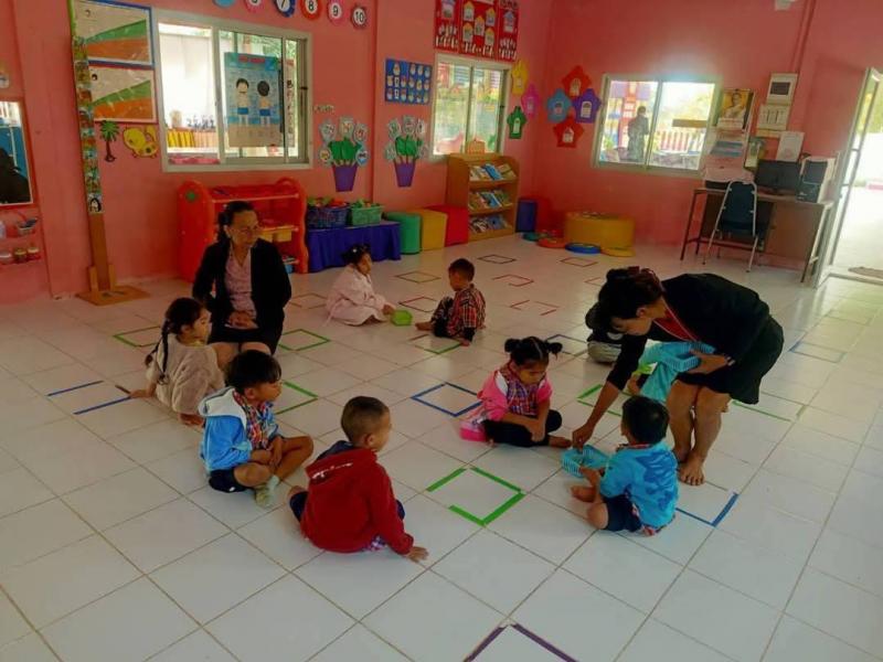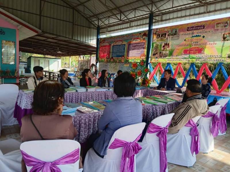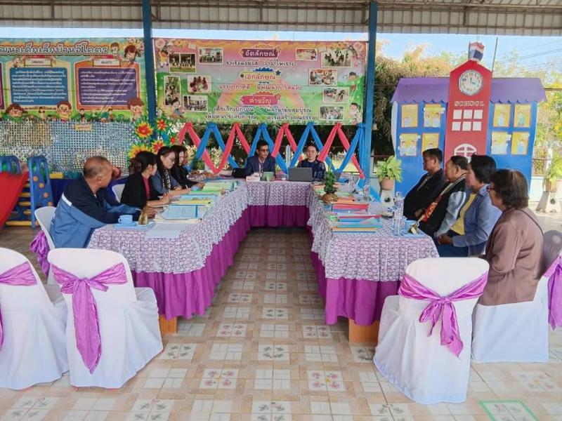 คณะครูศูนย์พัฒนาเด็กบ้านอีโคตร เข้ารับฟังการชี้แจง และสรุปผลการประเมินจากคณะกรรมการประเมินคุณภาพการศึกษาภายนอก