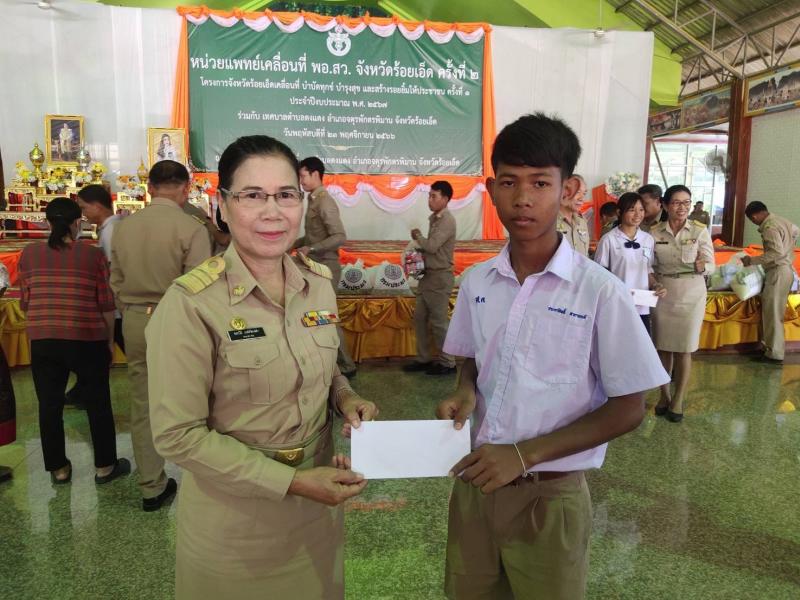 เข้าร่วมโครงการร้อยเอ็ดเคลื่อนที่ บำบัดทุกข์ บำรุงสุข และสร้างรอยยิ้มให้ประชาชน ครั้งที่ ๑ ประจำปีงบประมาณ พ.ศ. ๒๕๖๗ ได้มอบทุนการศึกษา ๑,๐๐๐ บาท ให้เด็กชายประกาสิทธิ์ สายายนต์ ปัจจุบันศึกษาในระดับชั้นมัธยมศึกษาปีที่ ๑