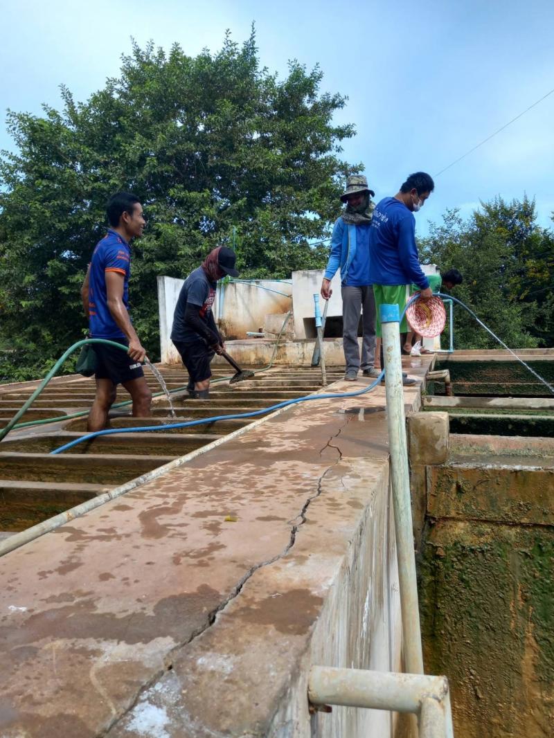 ดำเนินการล้างถังน้ำของระบบประปาหมู่บ้าน บ้านหนองหิน หมู่ที่ ๔ ตำบลศรีโคตร เพื่อแก้ไขปัญหาน้ำประปามีสีขุ่นข้น น้ำไม่ใสสะอาด (6 ภาพ)