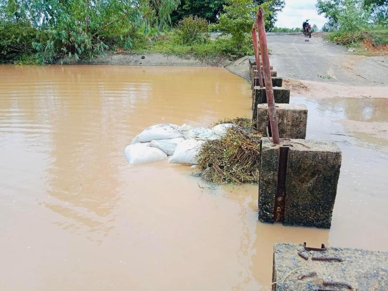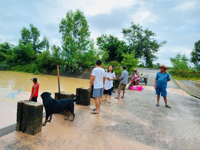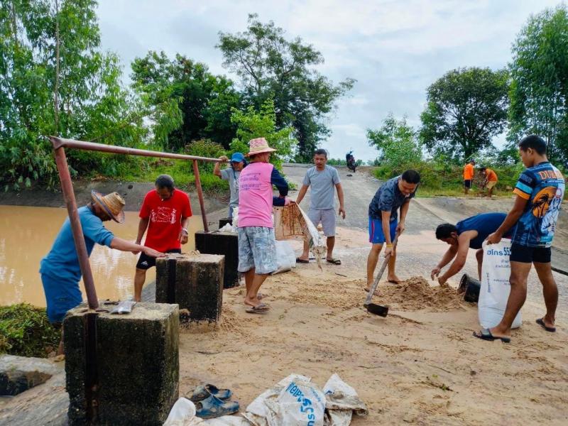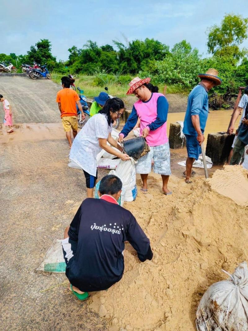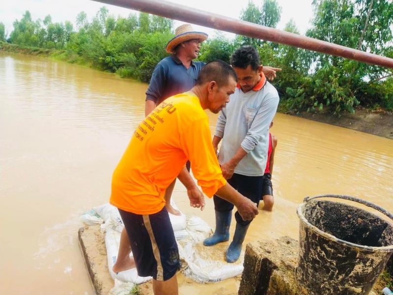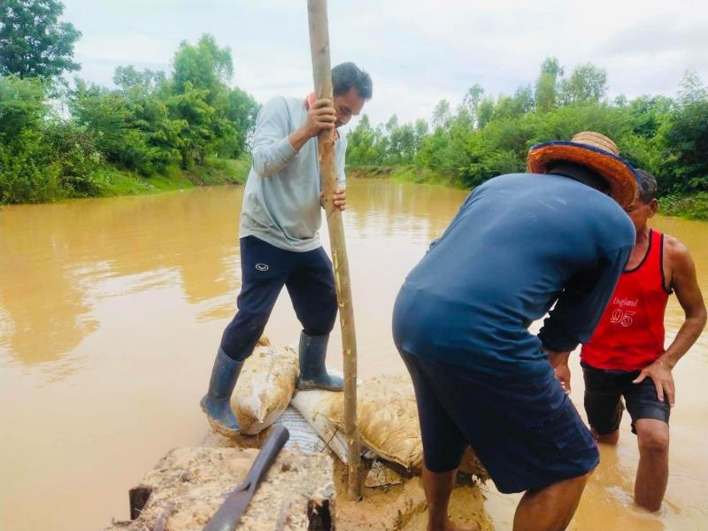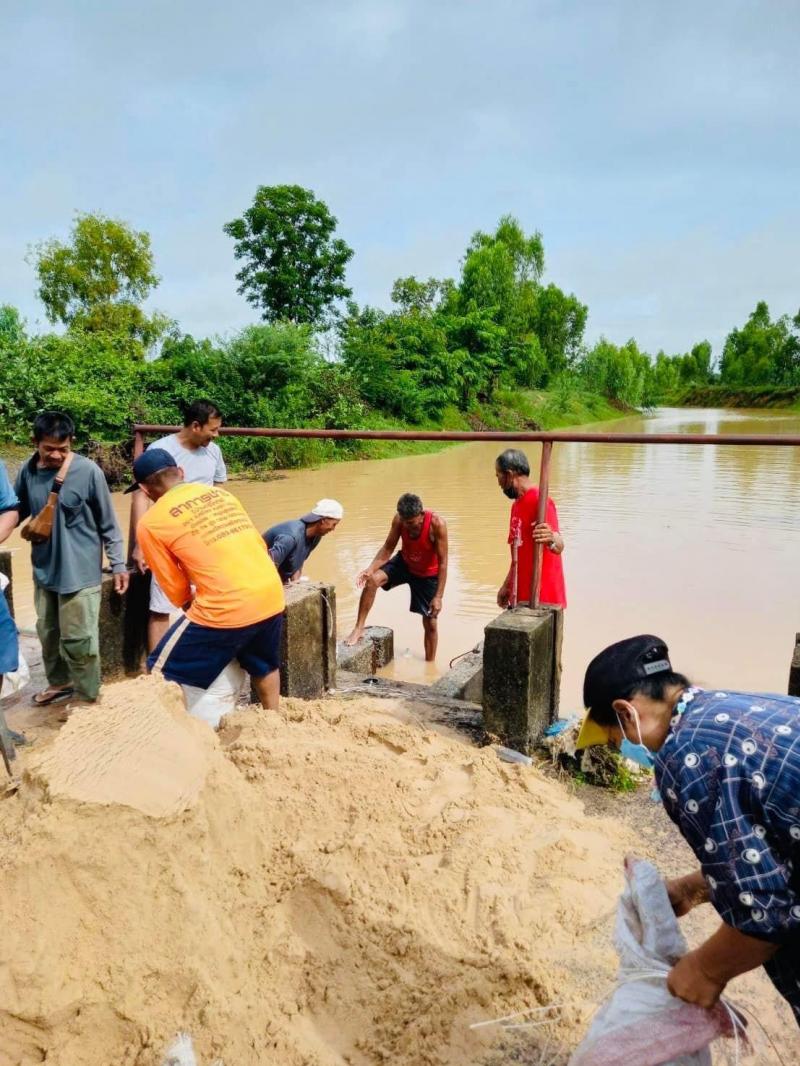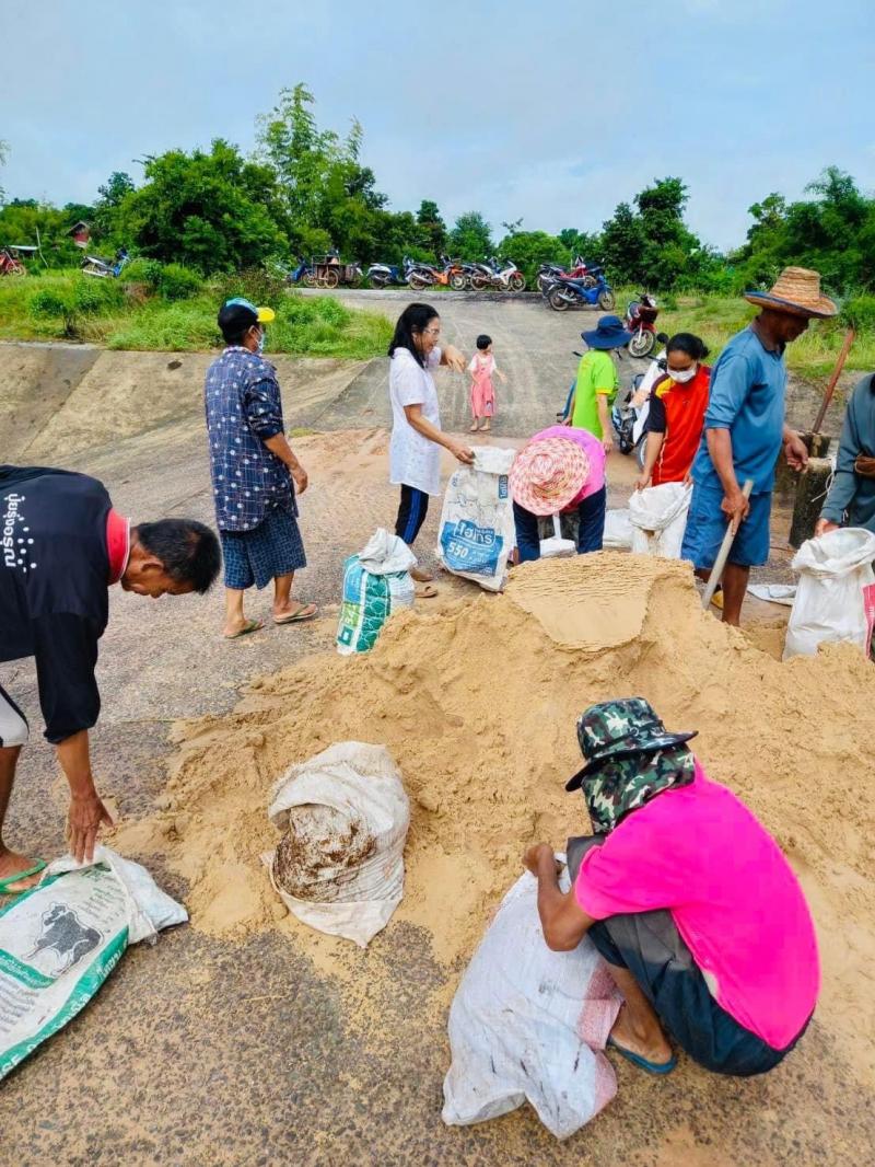 ร่วมกันทำคันกั้นน้ำล้น โดยใช้กระสอบทรายกั้น เพื่อปิดน้ำบริเวณฝายน้ำล้น คลอง รพช. บ้านหนองหิน หมู่ที่ ๔ เพื่อกักเก็บน้ำไว้ใช้ในฤดูแล้งและผันน้ำไปหนองหิน เพื่อใช้ในการผลิตน้ำประปา (11 ภาพ)