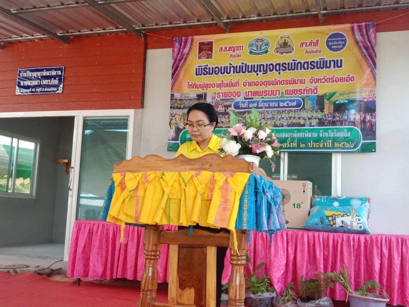 รายละเอียด : วันที่ ๑๗ มิถุนายน ๒๕๖๗ เวลา ๑๑.๐๐ น. นายทินกร พุทธลา นายกองค์การบริหารส่วนตำบลศรีโคตร มอบหมายให้ นายศรัณยู ขวาป้องใต้ รองนายกองค์การบริหารส่วนตำบลศรีโคตร ร่วมพิธีมอบบ้านปันบุญจตุรพักตรพิมาน ร่วมกับ หัวหน้าส่วนราชการ นายกองค์กรปกครองส่วนท้องถิ่น กำนัน ผู้ใหญ่บ้านในพื้นที่ตำบลอีง่อง โดยมี ร้อยตำรวจเอกหญิงอรุณี อินทรมณี นายอำเภอจตุรพักตรพิมาน เป็นประธานในพิธี และ นายสมาน มาตายะสี ปลัดอำเภอหัวหน้ากลุ่มงานบริหารงานปกครอง เป็นผู้กล่าวรายงาน ณ บ้าน นายพรมมา เพชรภักดี บ้านค้อ หมู่ที่ ๒ ตำบลอีง่อง อำเภอจตุรพักตรพิมาน จังหวัดร้อยเอ็ด