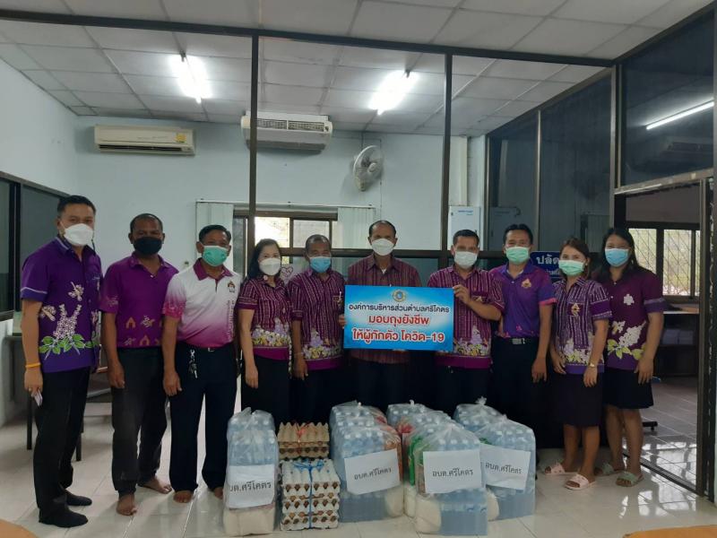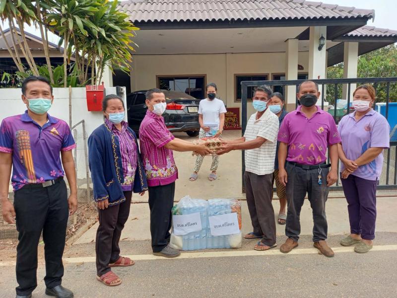 การมอบถุงยังชีพ ให้แก่ผู้กักตัว ที่หายป่วยจากการติดเชื้อไวรัส โควิด-19 บ้านสำโรง หมู่ที่7 จำนวน 2 ราย (4 ภาพ)