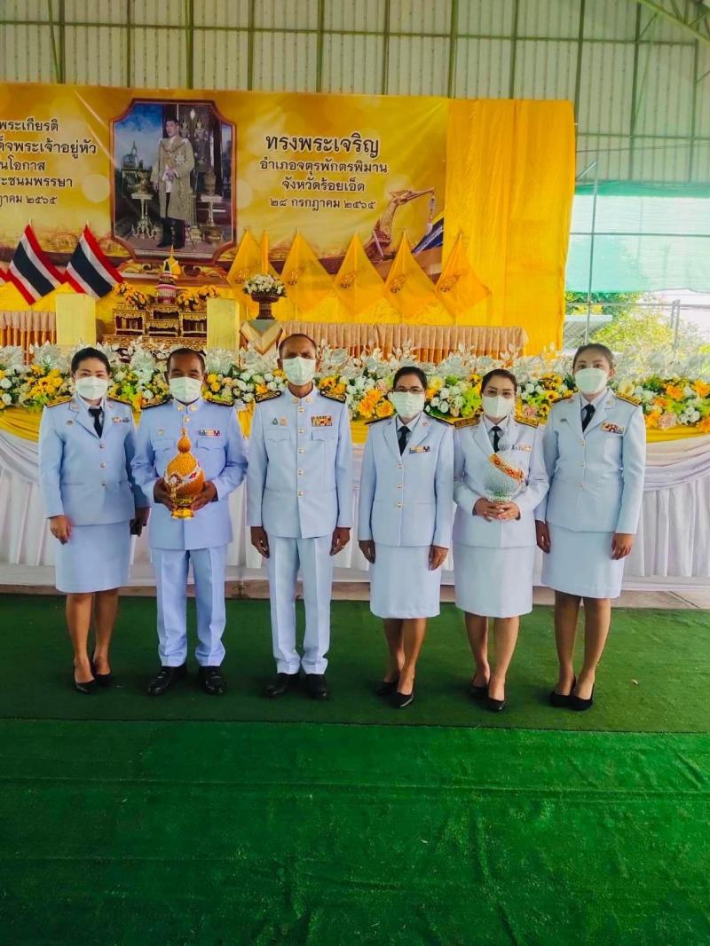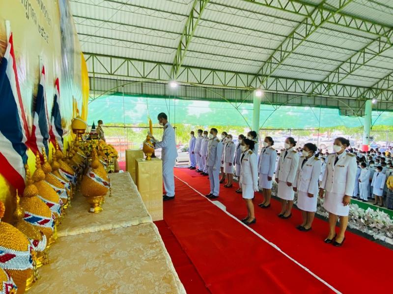 ร่วมพิธีวางพานพุ่มเงิน-พุ่มทอง พิธีจุดเทียนชัย และร่วมกันร้องเพลงสรรเสริญพระบารมี และเพลงสดุดีจอมราชา เนื่องในโอกาสวันเฉลิมพระชนมพรรษา ๒๘ กรกฎาคม ๒๕๖๕ (12 ภาพ)