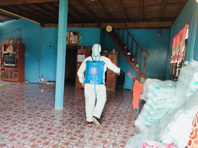 ดำเนินการพ่นฆ่าเชื้อ ครัวเรือนผู้ติดเชื้อ เพื่อป้องกันการแพร่ระบาดโรคติดเชื้อ โควิด - ๑๙ จำนวน ๗ ครัวเรือน (10 ภาพ)
