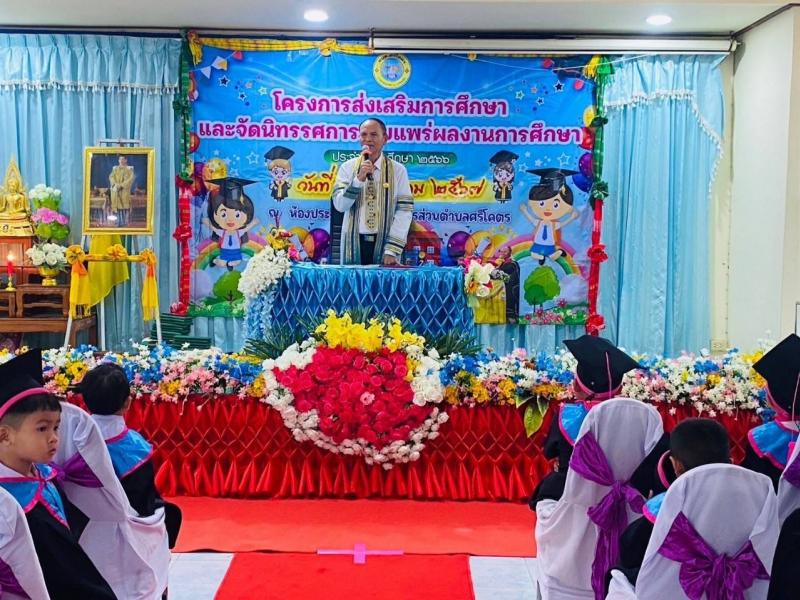 รายละเอียด : วันที่ ๒๙ มีนาคม ๒๕๖๗ เวลา ๐๙.๓๐ น.เป็นต้นไป นายทินกร พุทธลา นายกองค์การบริหารส่วนตำบลศรีโคตรได้ให้เกียรติเป็นประธานในพิธีเปิดโครงการส่งเสริมการศึกษาและเผยแพร่ผลงานการศึกษาปฐมวัย โดยมีนางอินทิรา ฤทธิยาน รองนายกองค์การบริหารส่วนตำบลศรีโคตร, นายทรง บุตรสอน เลขานุการนายกองค์การบริหารส่วนตำบลศรีโคตร นายวีระศักดิ์ จันทร์เพ็ง ปลัดองค์การบริหารส่วนตำบลศรีโคตร พร้อมด้วยท่านประธานศพด.ทั้ง ๔ แห่ง ข้าราชการพนักงานส่วนตำบล ท่านแขกผู้มีเกียรติทุกท่านได้เข้าร่วมพิธีมอบวุฒิบัตรบัณฑิตน้อยประจำปีการศึกษา ๒๕๖๖ เพื่อสร้างขวัญและกำลังใจให้กับเด็กเล็กที่ผ่านหลักสูตรการเตรียมความพร้อมในระดับก่อนวัยเรียน