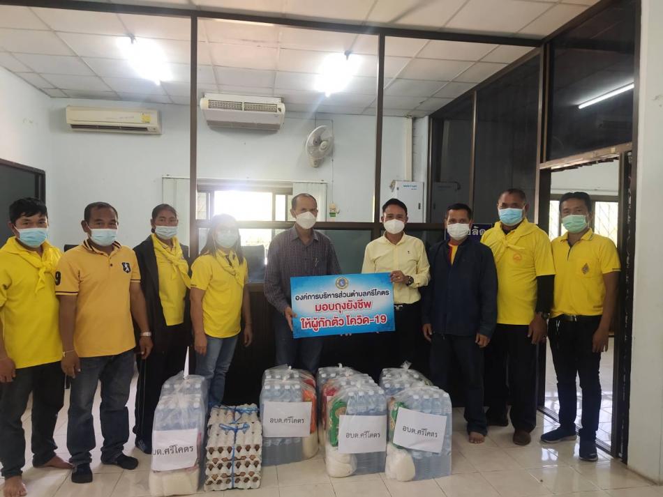 มอบถุงยังชีพ ให้กับผู้กักตัว ที่หายป่วยจากการติดเชื้อไวรัส โควิด-19 จำนวน 2 ราย ที่มากักตัว ณ ศูนย์ประสานงานประจำตำบลศรีโคตร (4 ภาพ) [12 มกราคม 2565]