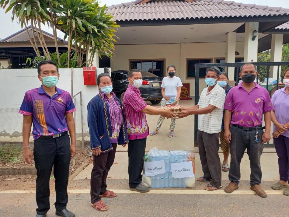มอบถุงยังชีพ ให้แก่ผู้กักตัว ที่หายป่วยจากการติดเชื้อไวรัส โควิด-19 บ้านสำโรง หมู่ที่7 จำนวน 5 ราย (4 ภาพ) [28 มกราคม 2565]
