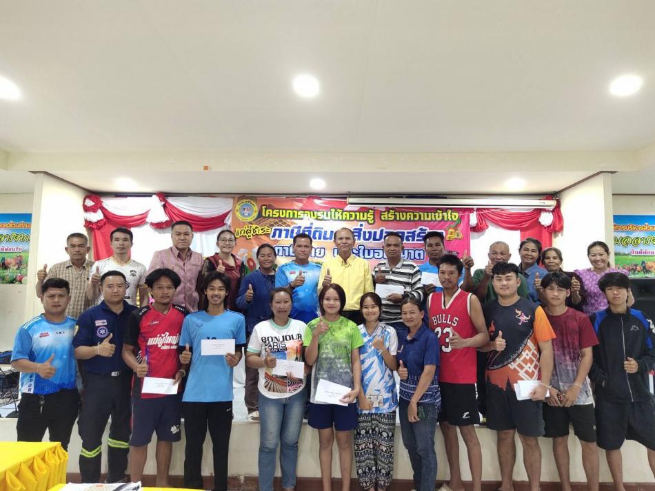 นายทินกร พุทธลา นายกองค์การบริหารส่วนตำบลศรีโคตร พร้อมด้วยเจ้าหน้าที่กองการศึกษาฯ มอบเงินรางวัลชมเชย ให้แก่ตัวแทนทีมนักกีฬาที่เข้าร่วมโครงการแข่งขันกีฬาประชาชน และเยาวชนต้าน ยาเสพติด [29 เมษายน 2568]