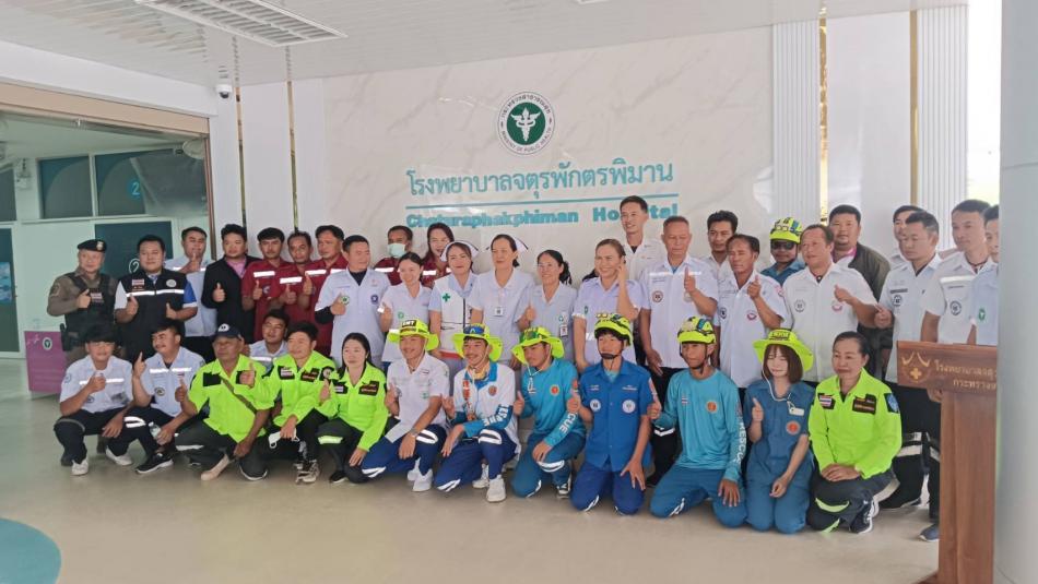 ซักซ้อมแผนอุบัติเหตุหมู่ ณ สถานที่ ถนนจตุพรพักตรพิมาน-ร้อยเอ็ด หน้าโรงสีข้าวสนธยา เพื่อทบทวนความรู้ เตรียมความพร้อมรับมืออุบัติเหตุในช่วงเทศกาลสงกรานต์ [28 มีนาคม 2568]