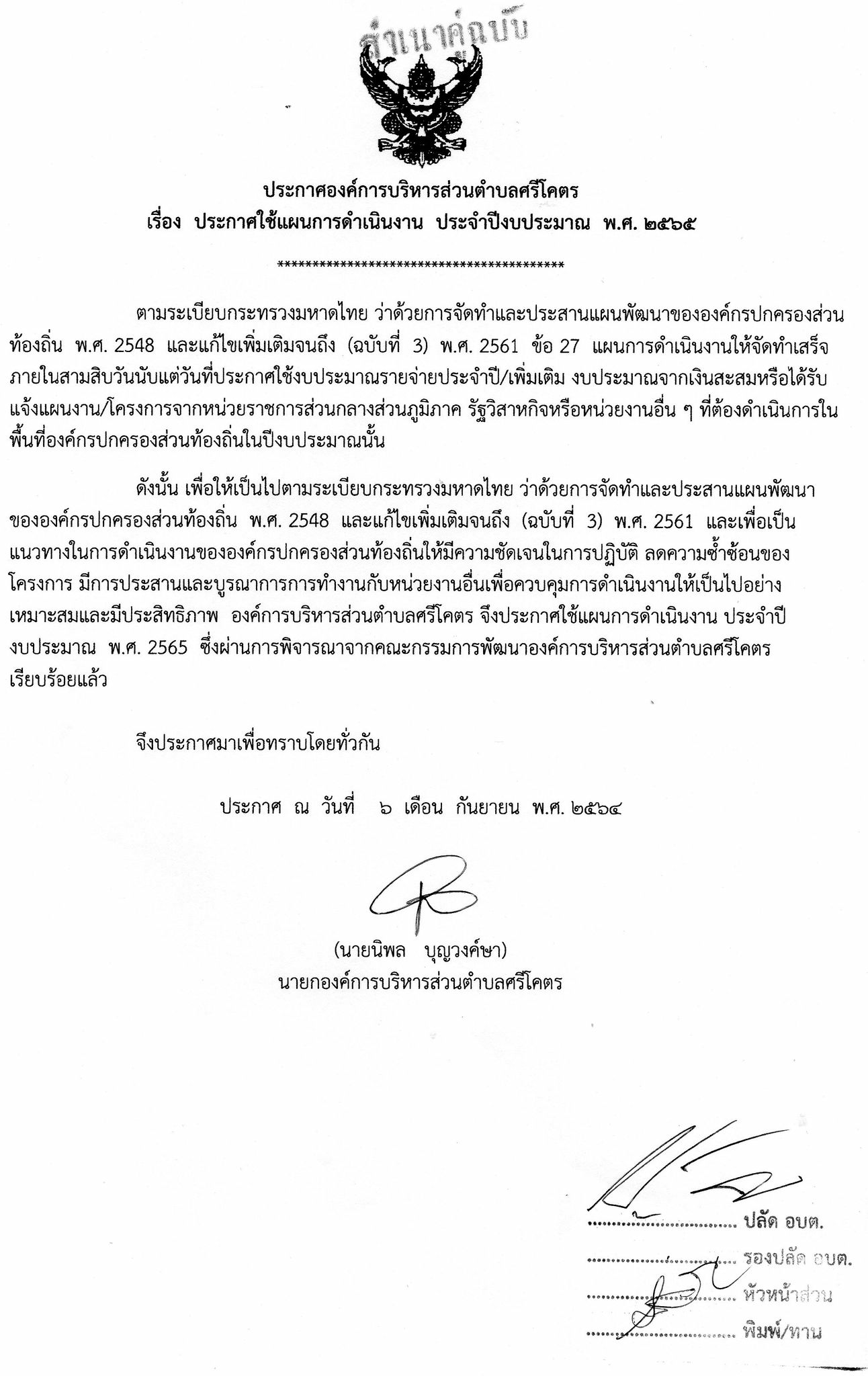 ประกาศใช้แผนการดำเนินงาน ประจำปีงบประมาณ พ.ศ.2565