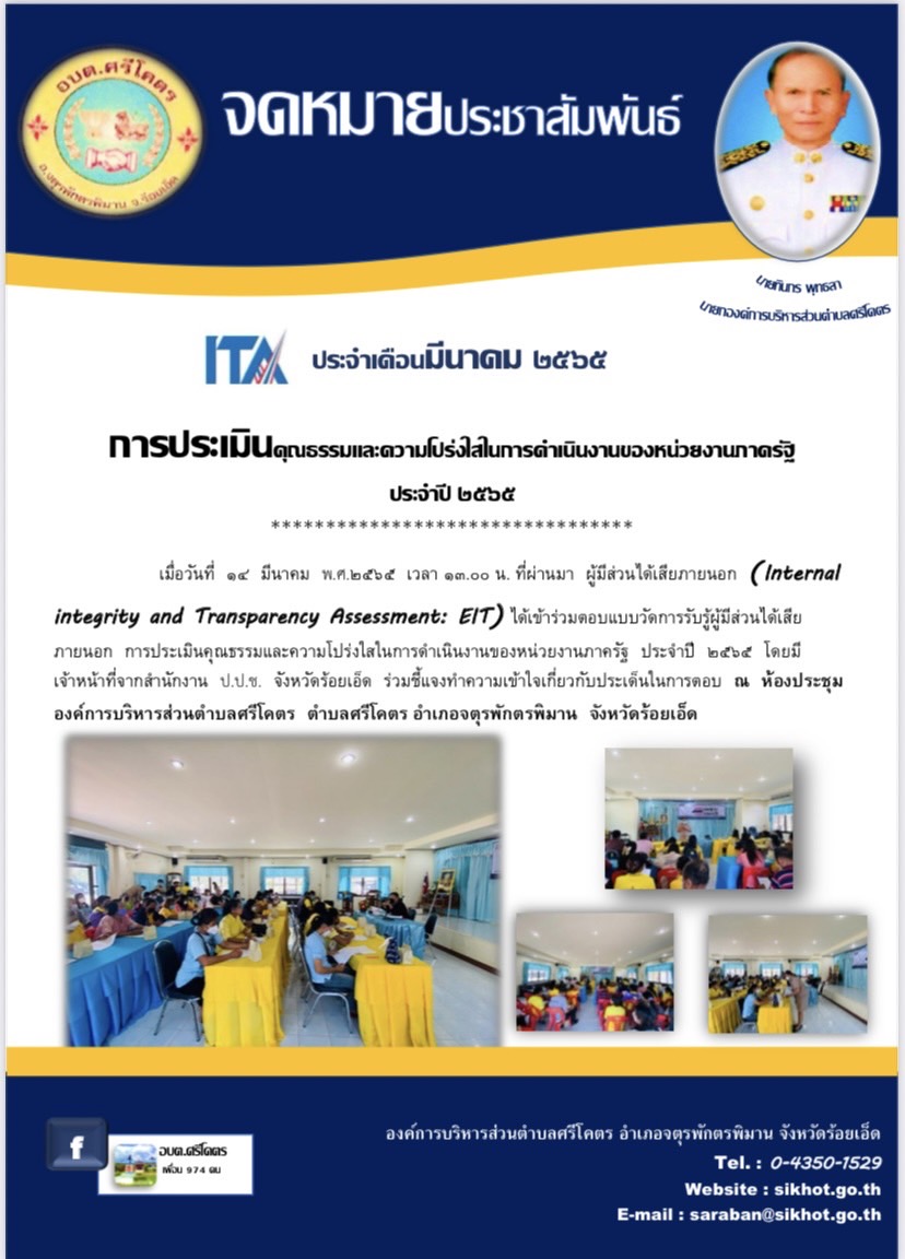 การประเมินคุณธรรมและความโปร่งในการดำเนินงานของหน่วยงานภาครัฐ ประจำปี 2565