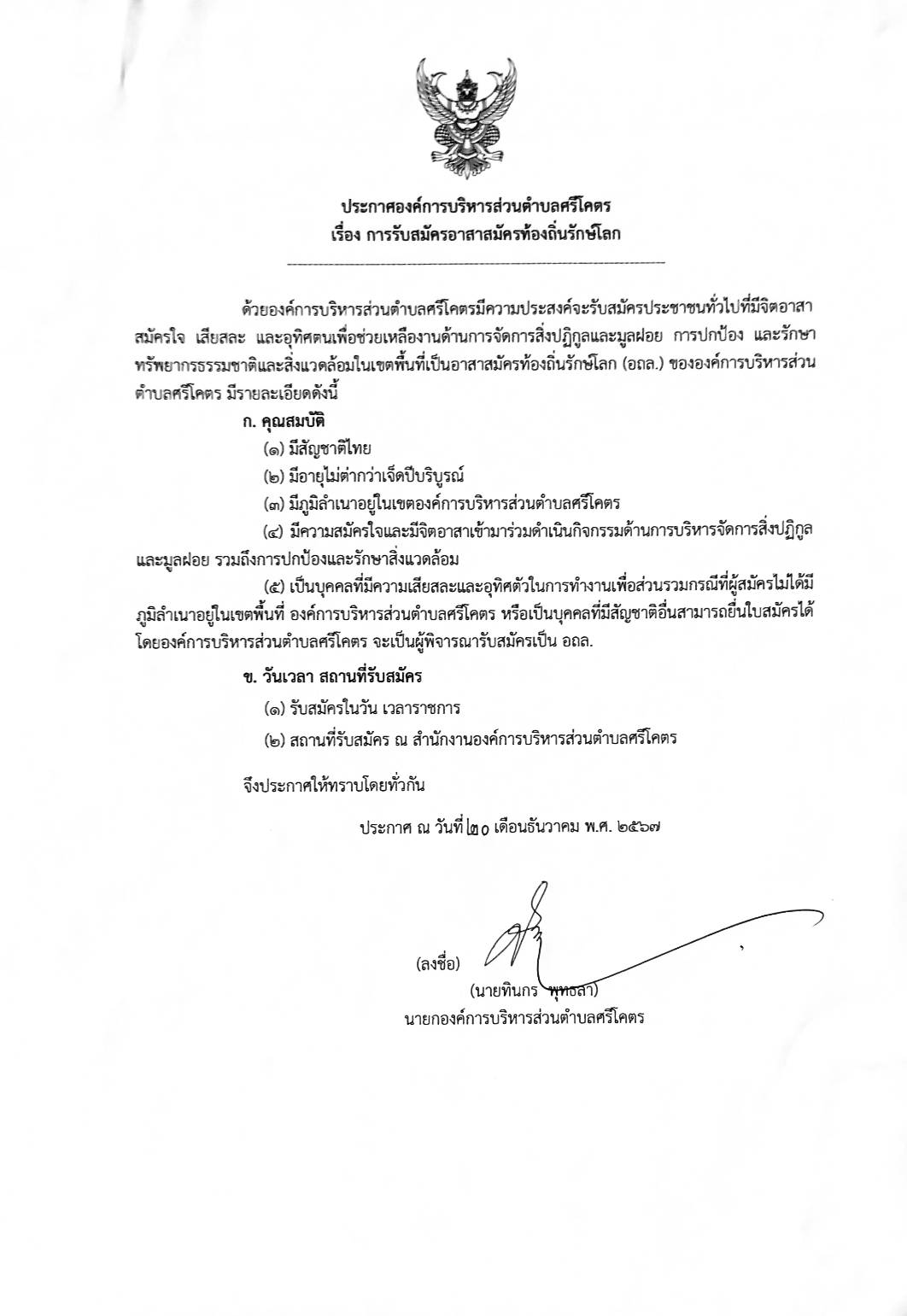การรับสมัครอาสาสมัครท้องถิ่นรักษ์โลก (อถล)