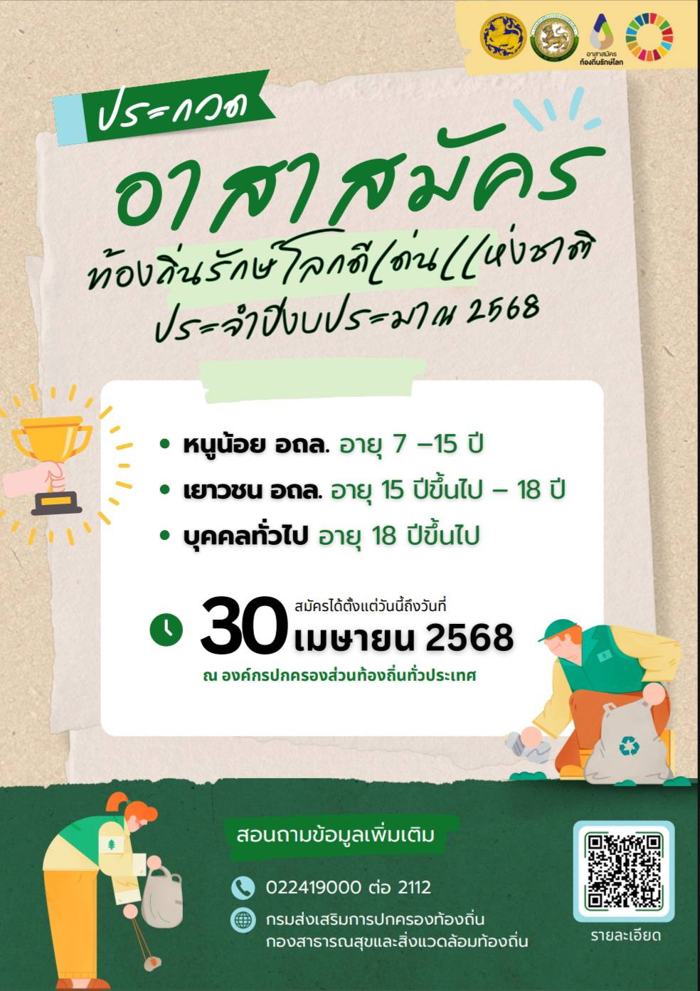 ประชาสัมพันธ์การประกวดอาสาสมัครท้องถิ่นรักษ์โลกดีเด่นแห่งชาติ ประจำปี พ.ศ.2568