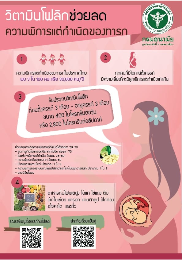 ชื่อเรื่อง : สำหรับหญิงที่เตรียมวางแผนจะตั้งครรภ์ควรรู้ วิตามินโฟลิกลดความพิการแต่กำเนิดของทารก ด้วยความปรารถนาดีจาก องค์การบริหารส่วนตำบลศรีโคตร #อ้างอิงจากศูนย์อนามัยที่ 9 นครราชสีมา กรมอนามัย