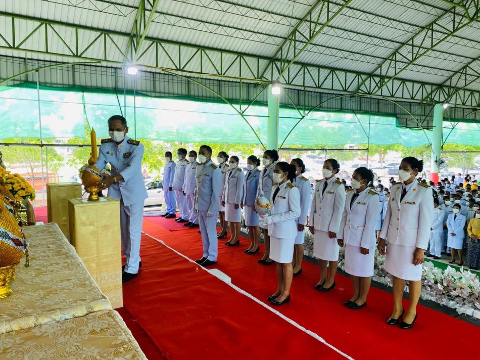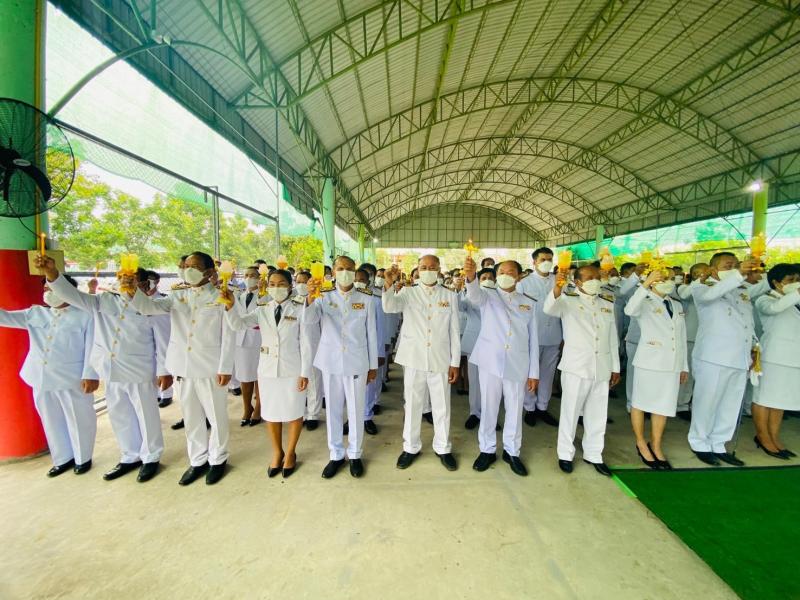 ร่วมพิธีวางพานพุ่มเงิน-พุ่มทอง พิธีจุดเทียนชัย และร่วมกันร้องเพลงสรรเสริญพระบารมี และเพลงสดุดีจอมราชา เนื่องในโอกาสวันเฉลิมพระชนมพรรษา ๒๘ กรกฎาคม ๒๕๖๕ (12 ภาพ)