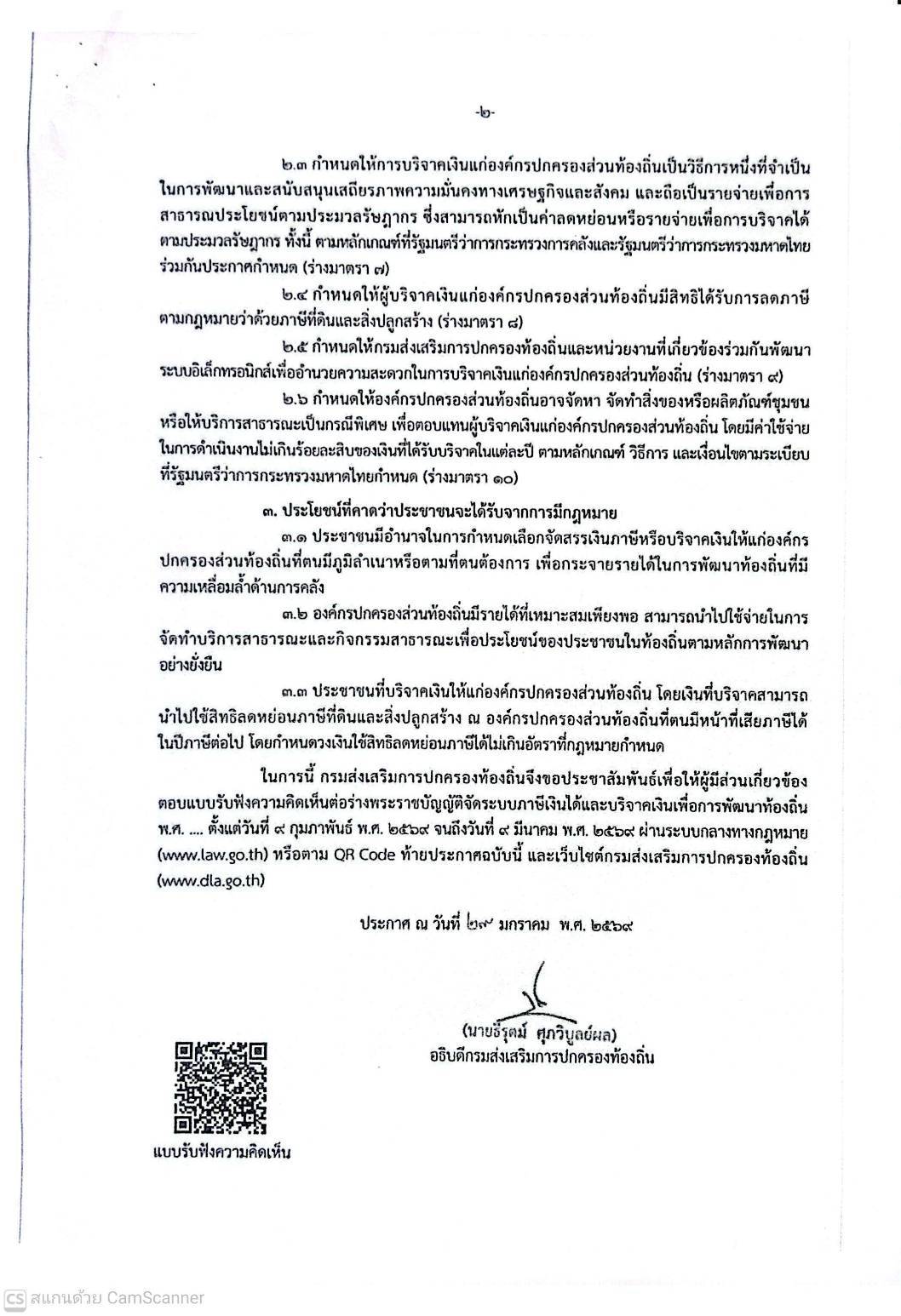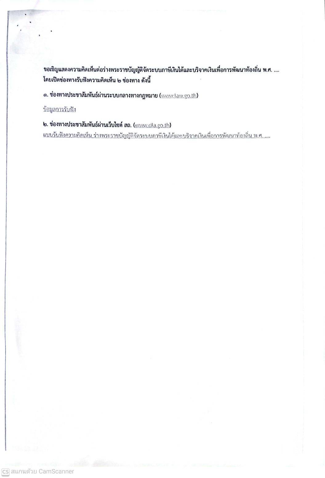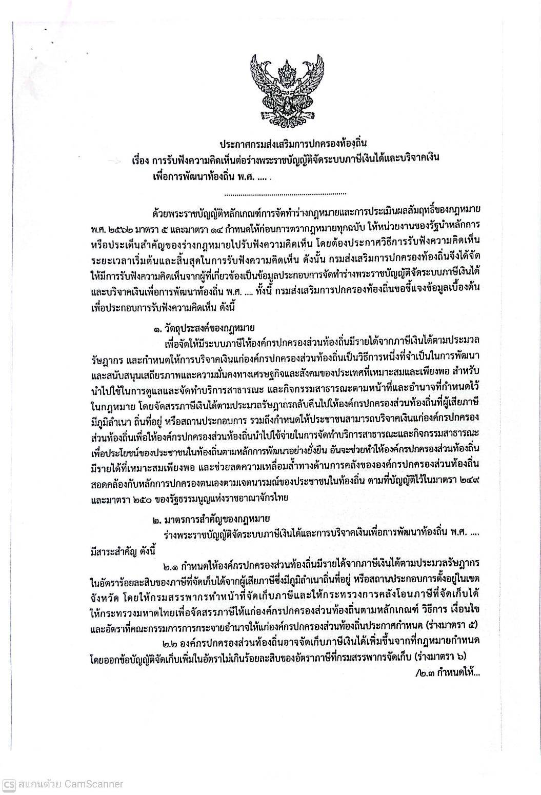 ประกาศกรมส่งเสริมการปกครองท้องถิ่นเรื่องการรับฟังความคิดเห็นต่อร่างพระราชบัญญัติจัดระบบภาษีเงินได้และบริจาคเงินเพื่อการพัฒนาท้องถิ่น